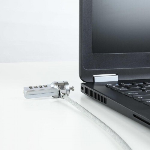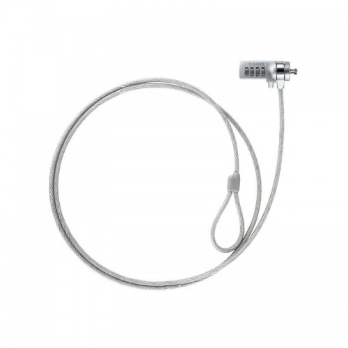 Cadeado de segurança universal Tooq TQCLKC0015 para proteger o seu portátil ou outro dispositivo com ranhura de segurança Kensington. Com combinação de 4 dígitos, cabo de aço de 1,5m e 4,5mm de diâmetro.