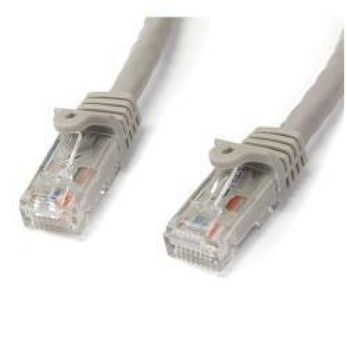 O cabo StarTech N6PATC1MGR é um cabo de rede de categoria 6, tipo UTP (Unshielded Twisted Pair), com blindagem. Possui conectores RJ-45 macho em ambas as extremidades, sendo um cabo cruzado. O comprimento é de 1 metro, e a cor é cinzenta. A embalagem contém uma única unidade. Garantia de 24 meses.