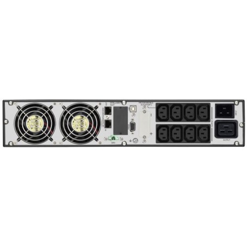 Este modelo possui um display LCD para monitorização do estado do UPS, múltiplas tomadas IEC para uma fácil conexão dos seus equipamentos, e portas USB e RS232 para comunicação e gestão. A sua arquitetura de dupla conversão garante uma saída de energia limpa e estável.