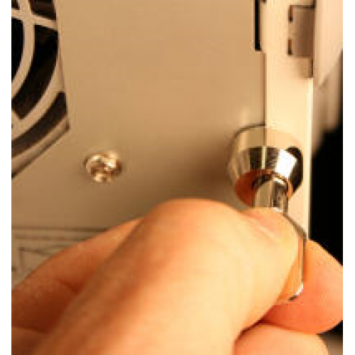 A fechadura para caixa desktop foi concebida especificamente para bloquear o painel lateral do computador, impedindo a abertura simples e imediata da caixa. Em vez de exigir modificações profundas, este sistema substitui um dos parafusos originais do painel, funcionando como ponto de bloqueio com chave, adicionando uma barreira física eficaz a um ponto normalmente desprotegido.