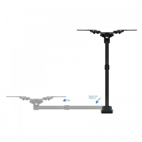 O design inclui um sistema de gestão de cabos, o que ajuda a manter os fios organizados e a melhorar a estética geral. O suporte é fabricado em materiais de alta qualidade, com acabamento preto elegante, que se integra discretamente em qualquer ambiente. A instalação é simplificada e acompanha todas as ferramentas e instruções necessárias.
