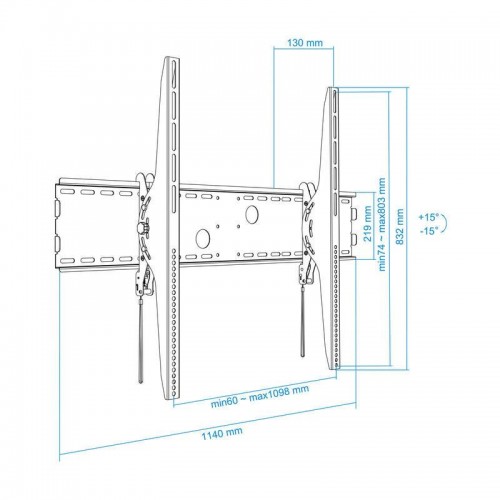 A sua funcionalidade de inclinação, com um ângulo ajustável entre -15° e +15°, permite que optimize o ângulo de visão da sua televisão para maior conforto visual, independentemente da posição do seu sofá ou da sua disposição da sala. A compatibilidade com várias normas VESA (200x200, 300x300, 400x200, 400x400, 600x400, 800x400, 800x600, 1000x400, 1000x600 e 1000x800 mm) garante a sua compatibilidade com uma vasta gama de televisores.
