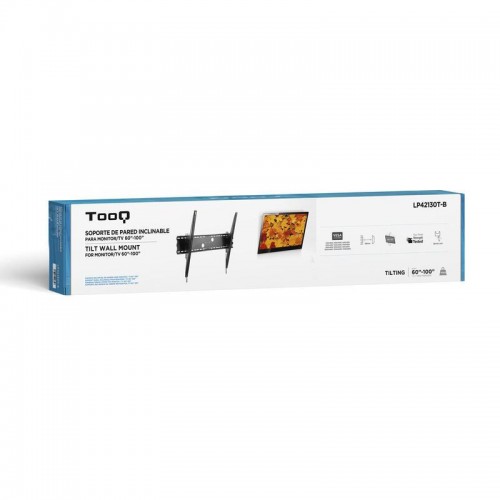 Suporte de parede Tooq LP42130T-B, ideal para televisores de 60 a 100 polegadas e até 130kg. Permite inclinação e é compatível com diversas normas VESA. Construção robusta e instalação simples.