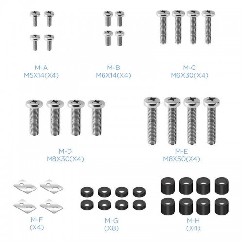 - Compatibilidade VESA: 200x200, 300x300, 400x200, 400x400, 600x400, 800x400, 800x600, 1000x400, 1000x600, 1000x800 mm