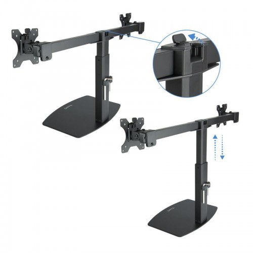 Ajuste a altura dos seus monitores com facilidade graças ao sistema de pistão a gás. Este mecanismo suave e preciso permite ajustar a altura entre 352 mm e 462 mm, permitindo encontrar a posição de visualização perfeita para as suas necessidades. A rotação de 180º e a inclinação de -10º a +10º adicionam ainda mais flexibilidade para uma posição ideal.
