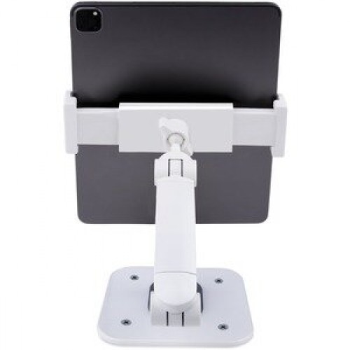 O Suporte Ajustável para Tablet StarTech ADJ-TABLET-STAND-W é a solução ideal para quem procura praticidade e ergonomia na utilização de tablets. Este suporte universal acomoda tablets com uma largura entre 12,7 cm e 22,7 cm e uma espessura máxima de 1,0 cm, com uma capacidade de carga de até 1 kg. O seu design permite um amplo movimento, com rotação de 360 graus, ajuste de altura até 47 cm e inclinação ajustável. A base ergonómica garante o conforto e a correta postura durante a utilização. A funcionalidade giratória permite o uso em modo retrato ou paisagem, adaptando-se às suas necessidades. O suporte StarTech inclui um sistema de montagem para mesa e parede, permitindo que o utilize onde melhor lhe convier. Para uma segurança adicional, pode ser combinado com os produtos KSLTAD e LTLOCK3DCOIL (vendidos separadamente), adicionando uma protecção antirroubo. Os cabos podem ser organizados numa ranhura disponível sob a pinça, mantendo o espaço de trabalho limpo e organizado. O suporte também inclui um acolchoado de silicone que protege o tablet e a superfície onde o coloca. O ADJ-TABLET-STAND-W é a solução perfeita para ambientes como lojas, salas de aula, escritórios ou qualquer espaço onde seja necessário um suporte prático e versátil para tablets. Este suporte foi concebido pela StarTech.com, marca reconhecida pela qualidade e fiabilidade dos seus produtos.