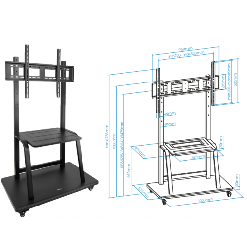 - Facilidade de movimentação: O suporte possui rodas para fácil movimentação e reposicionamento do ecrã, tornando-o versátil e prático.