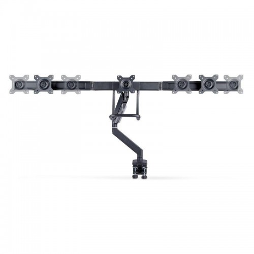 A instalação é flexível, podendo ser feita através de uma abrazadera em C para fixação na mesa ou um sistema de grommet para fixação no tampo da mesa. A sua construção em alumínio, plástico e aço garantem durabilidade e estabilidade, mesmo com monitores pesados. O design articulado permite ajustar a altura, inclinação e rotação de cada monitor individualmente, adaptando-se às suas necessidades ergonómicas.