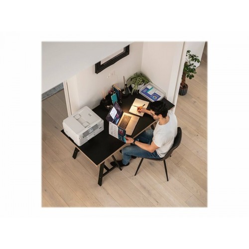 As funções de cópia e digitalização também são altamente eficientes, com uma resolução máxima de 1200 x 1200 DPI para cópias e 1200 x 2400 DPI para digitalizações. A digitalização dúplex permite digitalizar documentos de duas páginas em simultâneo, otimizando o tempo de trabalho. O fax a cores integra-se perfeitamente no sistema, oferecendo uma solução completa para todas as suas necessidades de comunicação. A impressora também inclui compatibilidade com vários sistemas operativos, incluindo Windows e macOS, garantindo uma compatibilidade ampla.