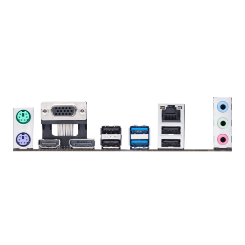 A nível de expansão, inclui uma ranhura PCI Express 4.0 x16 para placas gráficas e duas ranhuras PCI Express 3.0 x1 para outras placas de expansão. As portas traseiras incluem portas USB 2.0 e USB 3.2 Gen 1 para uma ampla gama de periféricos, portas HDMI e DisplayPort para saída de vídeo, e uma porta Ethernet Gigabit para conectividade de rede.