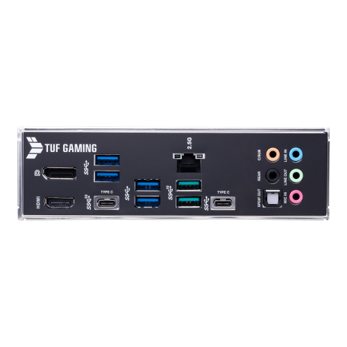 O painel traseiro inclui diversas portas USB 3.2 Gen 1 e Gen 2, portas HDMI e DisplayPort, e uma porta Ethernet de 2.5 Gigabit, garantindo conectividade rápida e versátil para periféricos e redes. A placa-mãe também integra áudio de alta definição de 7.1 canais para uma experiência sonora imersiva. A tecnologia de áudio ASUS Realtek oferece uma qualidade de som superior.