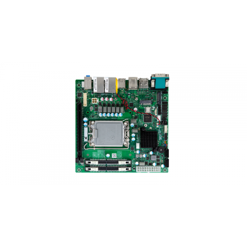 Apresenta suporte para processadores Intel de 12ª, 13ª e 14ª geração (LGA1700), garantindo compatibilidade com as mais recentes tecnologias de processamento. Possui dois slots de memória SO-DIMM DDR4, suportando até 64GB de memória, permitindo o desempenho ideal para multitarefas e aplicações intensivas. A presença de dois conectores RJ45 Gigabit Ethernet (LAN) garante uma conectividade de rede rápida e estável, essencial para aplicações industriais que requerem transferência de dados em tempo real.
