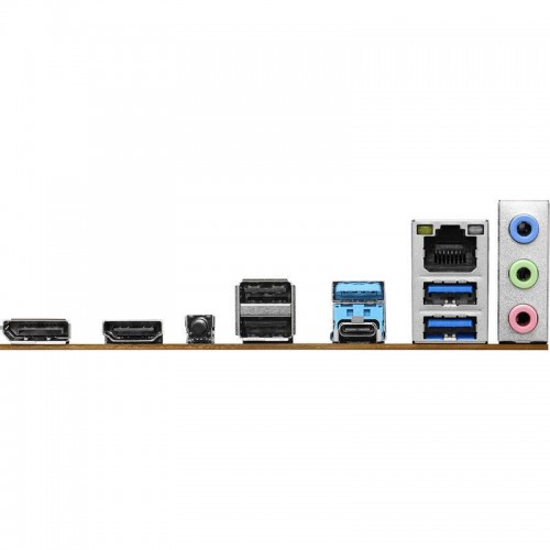No que diz respeito à conectividade, esta placa-mãe oferece uma ampla gama de portas para atender às suas diversas necessidades. Inclui um conector USB-C 3.0 para transferência de dados rápidas e uma porta Gigabit LAN de 2,5 Gigabit para uma conexão de rede estável e veloz. Além disso, você encontrará três portas USB 3.0, duas portas USB 2.0 e portas de áudio (1x Micrófono, 1x Entrada de Linha, 1x Saída de Linha). Para saída de vídeo, esta placa possui uma porta HDMI e uma porta DisplayPort.