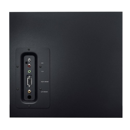 As dimensões do subwoofer são otimizadas para uma colocação fácil, mesmo em espaços mais limitados, enquanto o design elegante dos satélites complementa qualquer configuração. A qualidade de construção é robusta, garantindo durabilidade e longevidade do produto. A inclusão de um jack para auscultadores oferece uma opção de audição privada, ideal para sessões de jogos noturnas ou para não incomodar os outros.