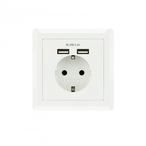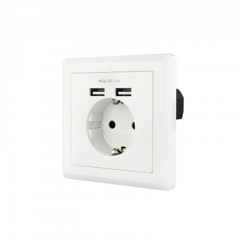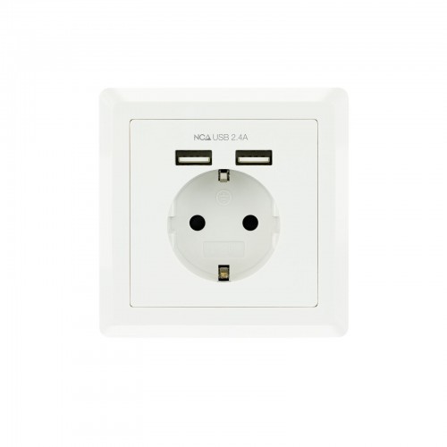 Tomada Nanocable 10.35.0010: Schuko com 2 USB (2.4A), Branca, Universal, Segurança