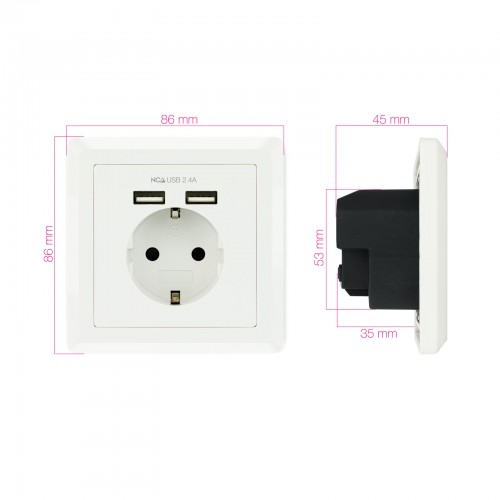 - Três Tomadas: Uma tomada Schuko padrão e duas portas USB, proporcionando flexibilidade para conectar diversos aparelhos.