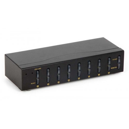 Data Switch VGA + Áudio OEM PP0831 com 8 portas. Inclui cabos VGA e comando remoto. Excelente relação preço/qualidade. Ideal para configuração de múltiplos computadores com partilha de recursos.