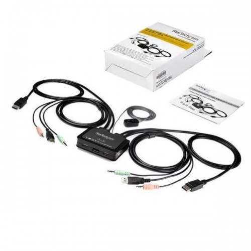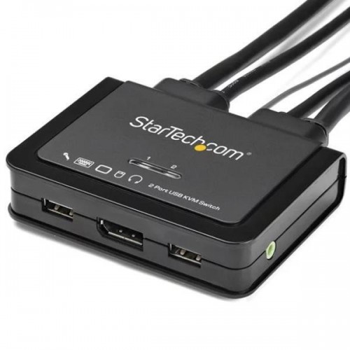StarTech.com 2 Port DisplayPort KVM Switch, 4K 60Hz, Compact Dual Port UHD DP 1.2 USB Desktop KVM Switch w/ Integrated 4ft Cables & Audio, Bus Powered & Remote Switching, MacBook ThinkPad - SV211DPUA4K