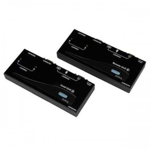 A resolução máxima suportada é de 1280 x 1024 pixels, adequada para tarefas básicas de escritório, monitorização de servidores ou outras aplicações que não exijam alta resolução gráfica. O extensor funciona de forma independente e não oferece funcionalidades de seleção manual, on-screen ou hot key, ou seja, a ligação é direta e não permite seleção de múltiplos computadores. Não inclui LEDs indicadores de estado ou alimentação autónoma, necessitando de uma fonte de alimentação externa. Com dimensões compactas e um design robusto e elegante na cor preta, o extensor pode ser instalado em mesa ou rack, adaptando-se a diversas configurações e ambientes. A embalagem inclui os cabos necessários para a instalação, simplificando o processo de configuração. O extensor KVM StarTech SV565UTPUEU garante uma solução fiável e eficaz para extensão de consoles KVM em distâncias significativas, graças à sua compatibilidade, simplicidade de utilização, e design compacto.