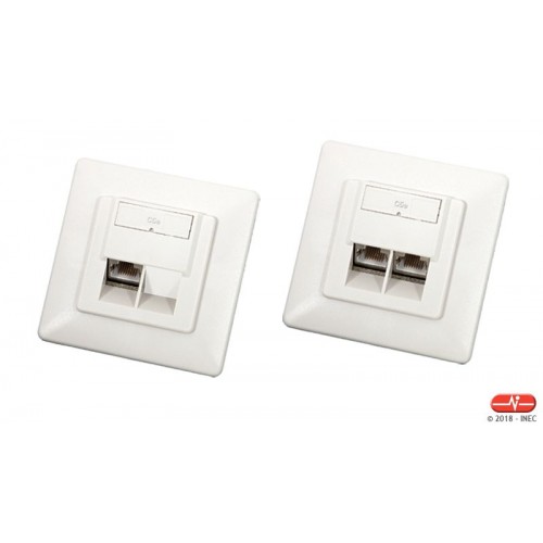 Tomada de Parede Rede OEM FE#2201: 2x RJ45, Cat 5e, STP DUAL+, Branca