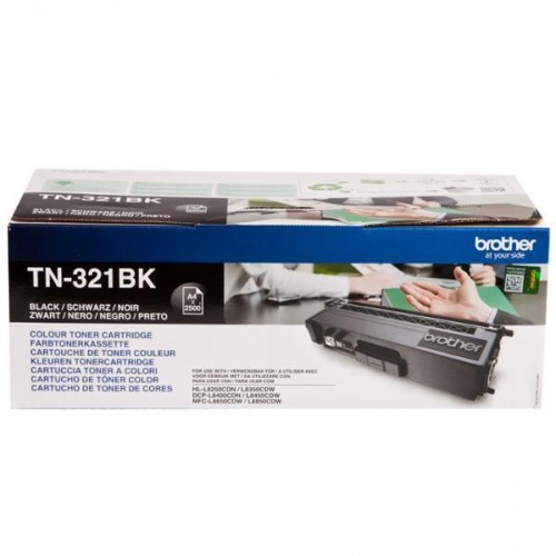 Toner preto Brother TN321BK para impressoras laser. Rendimento de 2500 páginas (padrão ISO/IEC 19752). Compatível com impressoras HLL8250CDN e HLL8350CDW. Alta qualidade de impressão. Embalagem com 1 unidade.