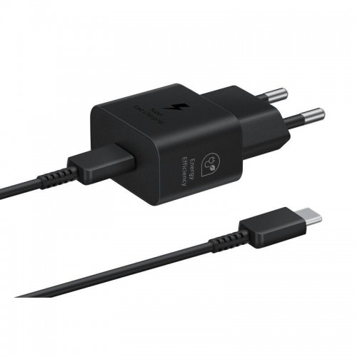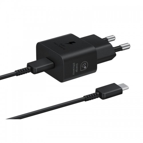 O carregador Samsung EP-T2510XBEGEU oferece carga rápida de 25W para dispositivos compatíveis com USB Tipo-C. Com design compacto e tecnologia GaN, é eficiente e fácil de transportar. Inclui cabo USB-C de 1 metro. Preto.