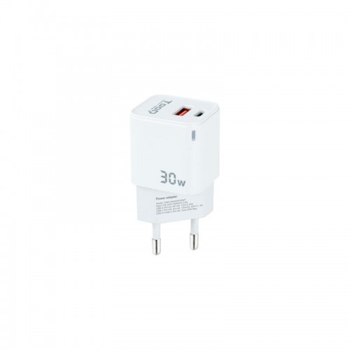 Carregador Tooq GaN 30W USB-C/PD + USB-A/QC, Branco