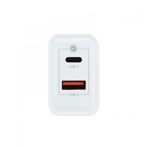 O carregador dispõe de uma porta USB-C com suporte a Power Delivery (PD) e uma porta USB-A com tecnologia QuickCharge 3.0. Ambas as portas permitem um carregamento rápido e otimizado para os seus dispositivos compatíveis. A porta USB-C PD suporta uma potência de saída máxima de 45W, ideal para carregar rapidamente smartphones e tablets com tecnologia de carregamento rápido. A porta USB-A QuickCharge 3.0 oferece um carregamento rápido para dispositivos compatíveis com esta tecnologia.