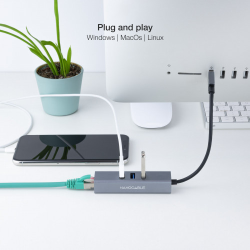 O Adaptador NanoCable 10.03.0407 é uma solução versátil para expandir as opções de conectividade de um dispositivo. Este adaptador permite adicionar três portas USB 3.0 Type-A e uma porta Ethernet RJ45 a um computador ou portátil através de uma única ligação USB 3.0.