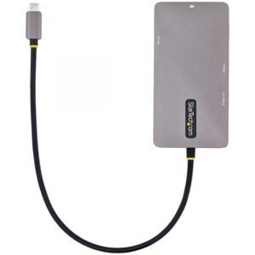 Este adaptador multiportas USB-C da StarTech.com oferece uma solução compacta e versátil para expandir a conectividade do seu portátil ou tablet. Com uma variedade de portas, incluindo HDMI 4K a 60Hz, este adaptador permite que conecte múltiplos dispositivos simultaneamente, melhorando a sua produtividade e multitarefa. A porta HDMI 4K a 60Hz permite que desfrute de imagens nítidas e fluidas em qualquer ecrã compatível, ideal para trabalho ou entretenimento.