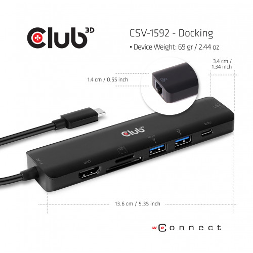 A CLUB3D CSV-1592 é uma docking station que oferece uma solução completa para aumentar a produtividade e a conectividade do seu portátil. Com uma única ligação USB-C, esta base permite expandir as capacidades do seu dispositivo, tornando-o ideal para uso em casa, no escritório ou em viagem.