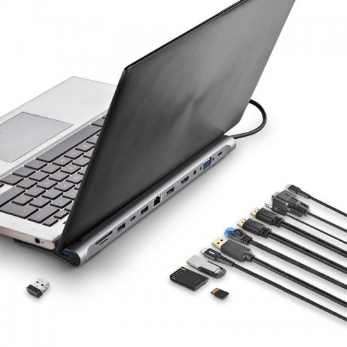 O Hub NGS WonderDock12 USB-C é um adaptador multipuerto 12 em 1, construído em alumínio, que oferece uma ampla gama de conectividade para os seus dispositivos. Compatível com Windows e Mac, permite ligar múltiplos periféricos simultaneamente.