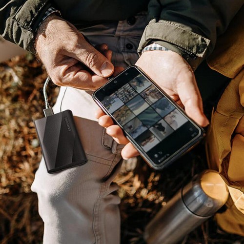 Mas a velocidade não é tudo. A Samsung incluiu várias medidas de segurança para proteger os seus dados mais valiosos. O Portable T9 é resistente a quedas de até 3 metros, assegurando a sua integridade física mesmo em caso de acidentes. Para proteção adicional, o disco inclui cifragem de hardware AES de 256 bits, mantendo os seus dados seguros e protegidos contra acessos não autorizados.
