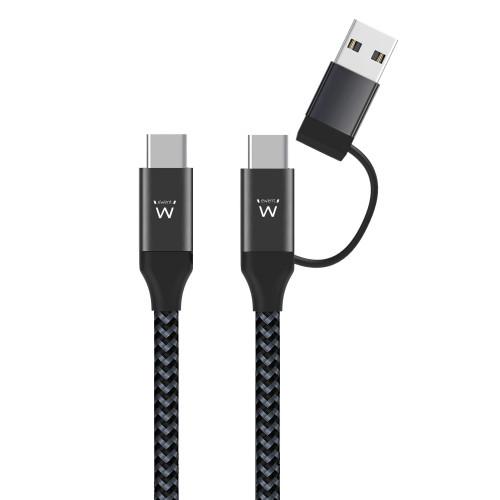 Cabo USB Ewent EW9918 - USB-C para USB-C e USB-A - 1m - Preto
