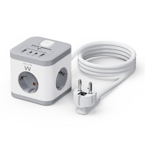 A base multipla Ewent EW3863 é uma solução prática e segura para conectar múltiplos dispositivos. Com 3 tomadas AC e 4 portas USB (2 USB-A e 2 USB-C com carregamento rápido PD), permite carregar smartphones, tablets e outros equipamentos simultaneamente. O seu design compacto e o cabo de 1,5m tornam-na ideal para uso em escritórios. Integra proteções contra sobretensão, sobreaquecimento e curto-circuito, garantindo a segurança dos seus dispositivos. Um interruptor liga/desliga permite controlar todos os dispositivos de uma só vez, otimizando o consumo de energia e segurança. A base possui pés de borracha antiderrapantes e um design angular que facilita a ligação em tomadas de parede em espaços apertados.