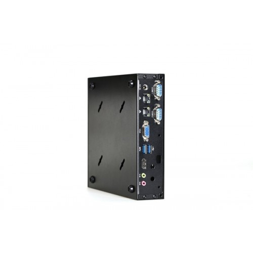 O suporte VESA incluído permite a montagem do computador na parte traseira de monitores ou em paredes, otimizando o espaço e proporcionando uma instalação limpa e organizada. A alimentação é feita por uma fonte de 12V / 5A. O sistema operativo é Linux Ubuntu, oferecendo uma alternativa flexível e personalizável.