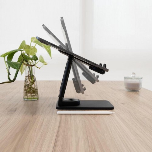 Para quem busca versatilidade, o Halley é uma escolha ideal. Compatível com uma ampla gama de dispositivos, incluindo tablets com até 12,9 polegadas, o seu design universal adapta-se a quase todos os modelos do mercado. O suporte também suporta dispositivos mais leves, como telefones. Apesar de versátil, a sua capacidade de carga máxima é de 1kg.