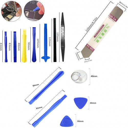 O kit é adequado para uma vasta gama de aplicações, incluindo a reparação de ecrãs LCD, baterias e outros componentes sensíveis. As ferramentas são construídas com materiais de alta qualidade para garantir durabilidade e precisão. As cabeças das chaves de fenda são feitas de liga de aço resistente, enquanto as ferramentas de alavanca são fabricadas em aço inoxidável de grau profissional.