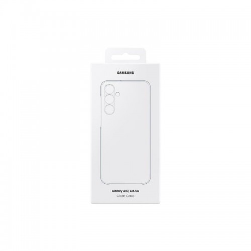 Capa transparente Samsung Clear Case para Galaxy A16, fina e elegante, com apenas 1,1mm de espessura. Oferece proteção contra riscos e um acabamento premium anti-amarelecimento. Permite a personalização com autocolantes.