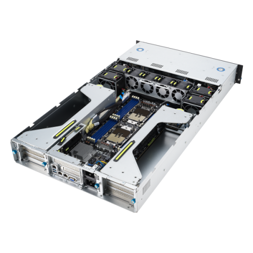 O servidor barebone ASUS ESC4000A-E11 representa a convergência perfeita entre desempenho de nível empresarial e flexibilidade de personalização. Este modelo 2U, projetado para racks de servidores padrão, oferece um equilíbrio ideal entre espaço físico otimizado e capacidades de expansão robustas, tornando-se uma escolha inteligente para uma ampla gama de aplicações. A sua construção em aço garante robustez e durabilidade, ideal para ambientes de data center exigentes.