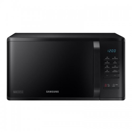 Micro-ondas Samsung com 23 litros de capacidade e 800W de potência. Design compacto e elegante na cor preta. Ideal para aquecer e cozinhar alimentos rapidamente e eficientemente.