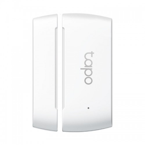 Sensor de contacto inteligente TP-Link Tapo T110, branco, para monitorização de portas e janelas. Comunicação sem fios (922 MHz) e bateria CR2032. Dimensões compactas: 37,5 x 12,3 x 61,4 mm.