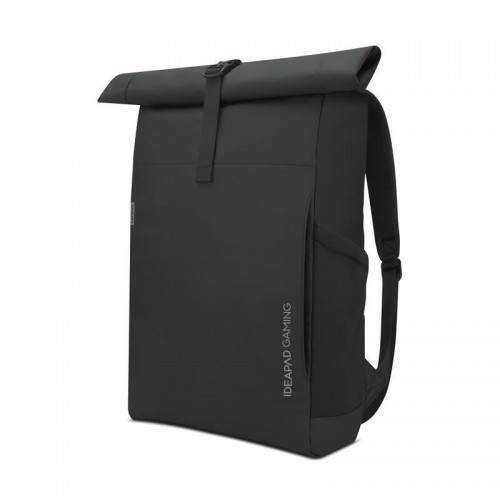 Mochila Lenovo Ideapad Gaming Modern 16" em preto, ideal para portáteis de 16 polegadas. Fabricada em plástico reciclado, apresenta 3 secções e um design desportivo.
