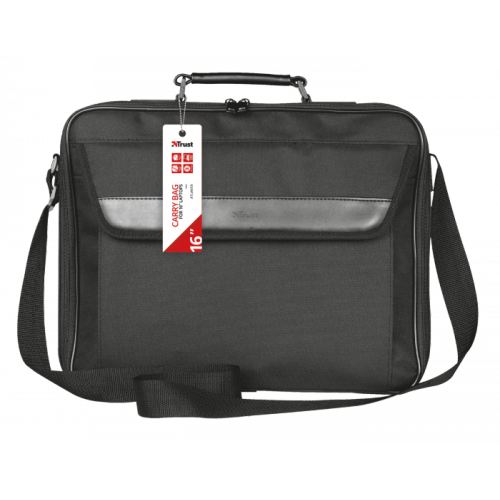 Mala Trust Atlanta para Portátil 16", Pasta Preta, 40,6 cm, Alça de Ombro e Pega