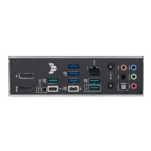 - Painel Traseiro I/O: Portas Thunderbolt 4, USB-C, USB 10Gbps, USB 5Gbps, DisplayPort, HDMI, Wi-Fi, Intel 2.5Gb Ethernet, tomadas de áudio e botão BIOS FlashBack.