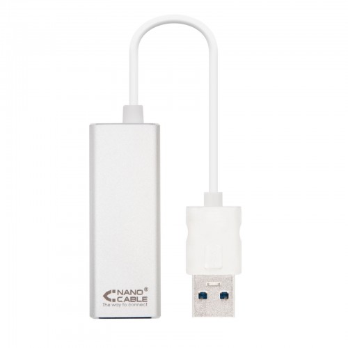 Adaptador de rede Gigabit Ethernet USB 3.0 da NanoCable, modelo 10.03.0401. Conecte facilmente o seu computador a uma rede com este adaptador compacto e prático. Suporta velocidades de até 1 Gbps.