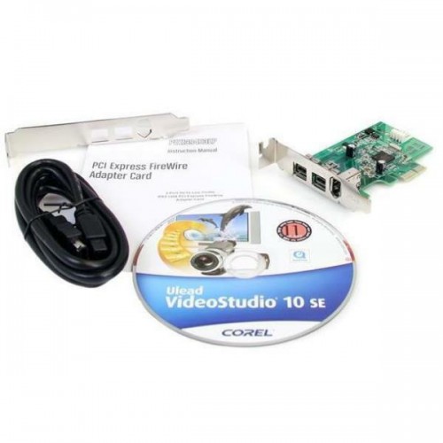 A placa controladora PEX1394B3LP da Startech adiciona três portas Firewire IEEE 1394 a um computador através de um interface PCI Express. Oferece velocidades de transferência de dados de até 800 Mbps. Inclui um cabo Firewire.