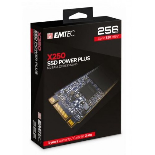 SSD Emtec X250 M.2 256GB - Leitura 520MB/s, SATA3
