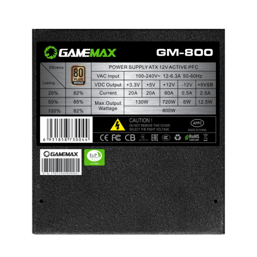 Fonte Gamemax GM-800 800W Bronze, Semi-Modular, PFC Ativo, EAN:6931858730044