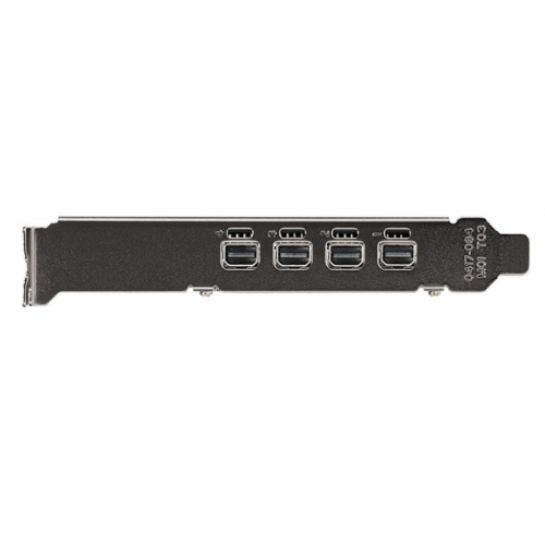 A placa possui quatro portas Mini DisplayPort, permitindo a ligação a múltiplos monitores e a criação de configurações de visualização expandidas. A interface PCI Express x16 3.0 assegura uma transferência de dados rápida e eficiente, enquanto a resolução máxima de 7680 x 4320 pixels garante imagens nítidas e detalhadas. O consumo de energia típico de 50W torna-a eficiente e adequada para diversos sistemas.
